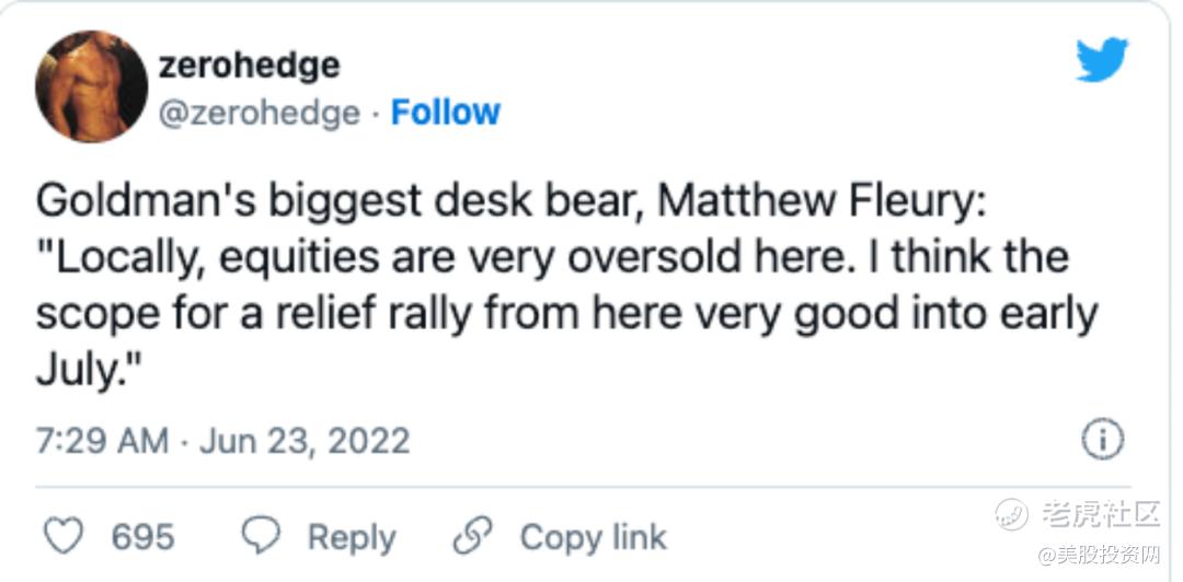 此外,高盛交易员Matt Fleury同样表示了"战术性"看涨,他表示美股超卖,从当前到7月初美股或将反弹,不过他并没有改变其长期看跌的观点。