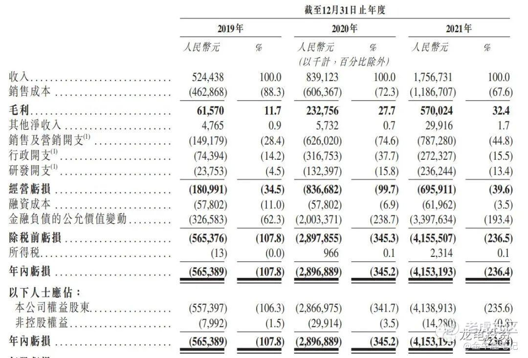 年内亏损:2019年净亏损5.65亿人民币,2020年净亏损28.96亿人民币,2021年净亏损41.53亿人民币。