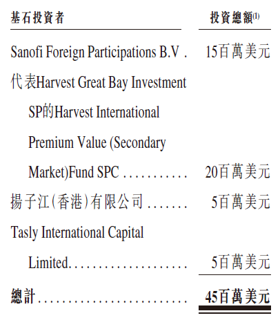 智云健康是次IPO引入4名基石投资者,合共认购4500万美元发售股份。其中Sanofi (赛诺菲-安万特SNY.NASDAQ)、嘉实基金、扬子江药业主席徐浩宇先生的扬子江香港、闫凯境先生的Tasly集团将分别认购1500万美元、2000万美元、500万美元、500万美元的发售股份。