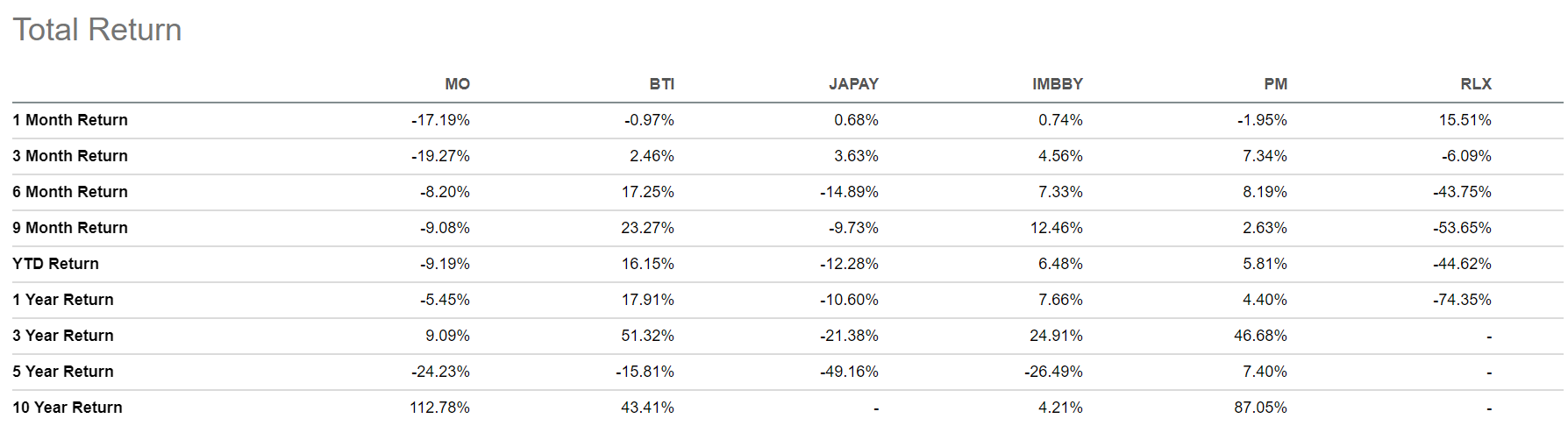 这恐怕也是MO自2018年以来表现不如同行的$英美烟草(BTI)$ $菲利普莫里斯(PM)$ 好的总要原因。