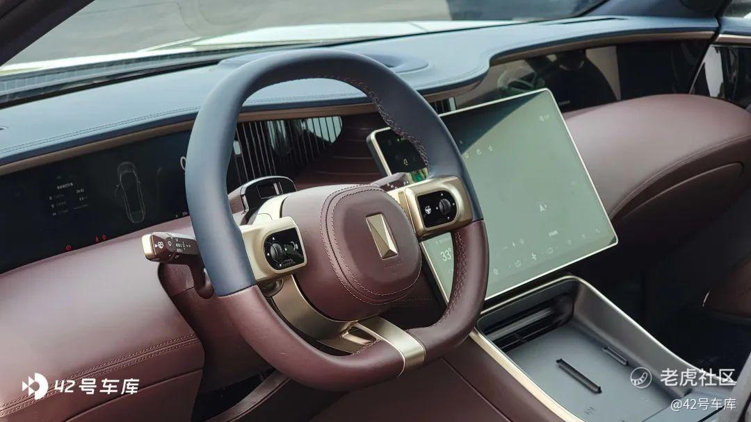 同样为横屏,我们自主品牌就非常懂得照顾到车内人员的感受。极氪 001 的内饰也是以屏幕为中心,但在中控台上有大面积的双拼皮质包裹和饰板做点缀,整体豪华感营造是具备的。