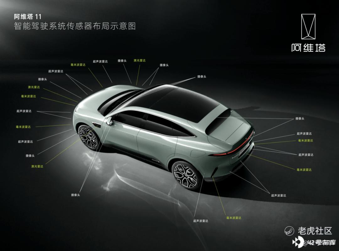 在发布会上,阿维塔表示 11 将会是辅助驾驶的天花板,搭载了华为智能驾驶技术,也就是我们熟知的 HI,硬件上具有 34 个智驾传感器。核心参数如下: