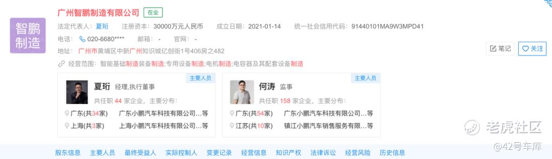 在工信部目录上,我们还惊喜地发现,G9 部分车型的电机生产企业名为广州智鹏制造有限公司,该公司法人代表正是小鹏汽车联合创始人兼总裁夏珩。