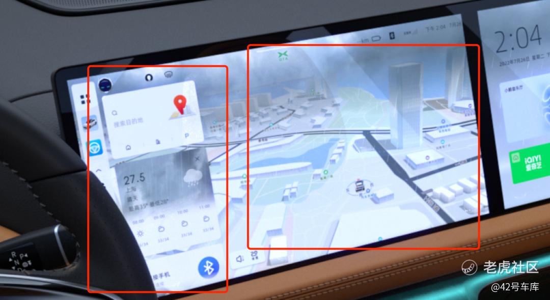 UI 方面可以看到小鹏将不同 APP 做成了类似于智能电视的卡片式大图标方便交互,同时将音乐做成了类似小组件的形式放在右侧,此外和理想 L9 一样,副驾屏可以通过连接蓝牙耳机,来实现主副驾同时听不同的歌曲。