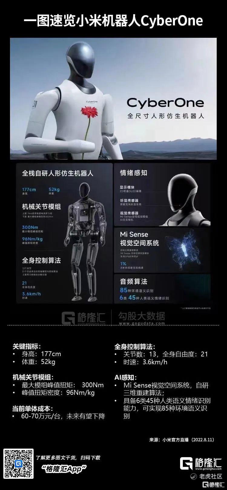 点燃行情是小米最新亮相的人形仿生机器人“铁大”——CyberOne。人形机器人将给世界带来怎样的变革?这是目前全球关注的焦点。
