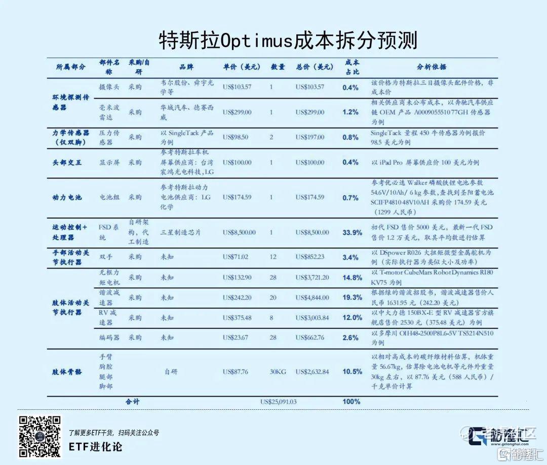 而能否成为现象级新品,安信证券认为核心还是看技术降本。从测算的特斯拉人形机器人成本构成来看:肢体活动关节执行器/运动控制+处理器/肢体骨骼/手部关节执行器/其他的成本占比分别为48.7%/33.9%/10.5%/3.4%/3.5%。