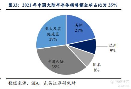 中国已经连续多年成为全球最大的半导体消费市场,根据美国半导体行业协会(SIA)发布数据显示,2021年全球半导体市场总销售额为5559亿美元,同比增长26.2%,而中国的半导体市场销售额为1925亿美元,同比增长27.1%,占全球销售份额的35%。亚太及其他地区的占比为27%,美洲的占比21%,欧洲和日本的占比为9%和8%。