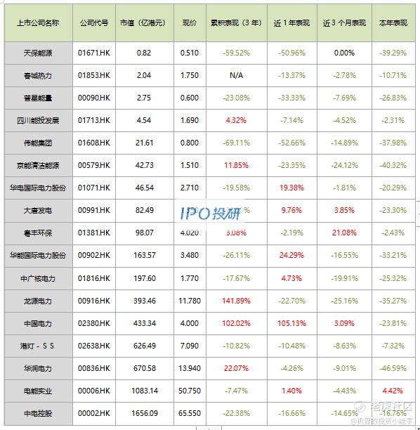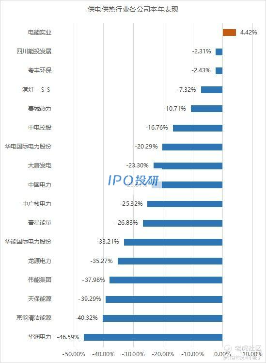 本年涨幅最大的是电能实业(00006.HK),涨幅4.42%;跌幅最大的是华润电力(00836.HK),跌幅为-46.59%。