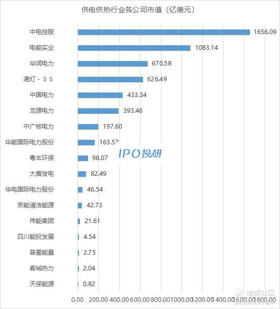 3、市值最高的是中电控股(00002.HK),市值为1656.09亿元;市值最低的是天保能源(01671.HK),市值为0.82亿元。