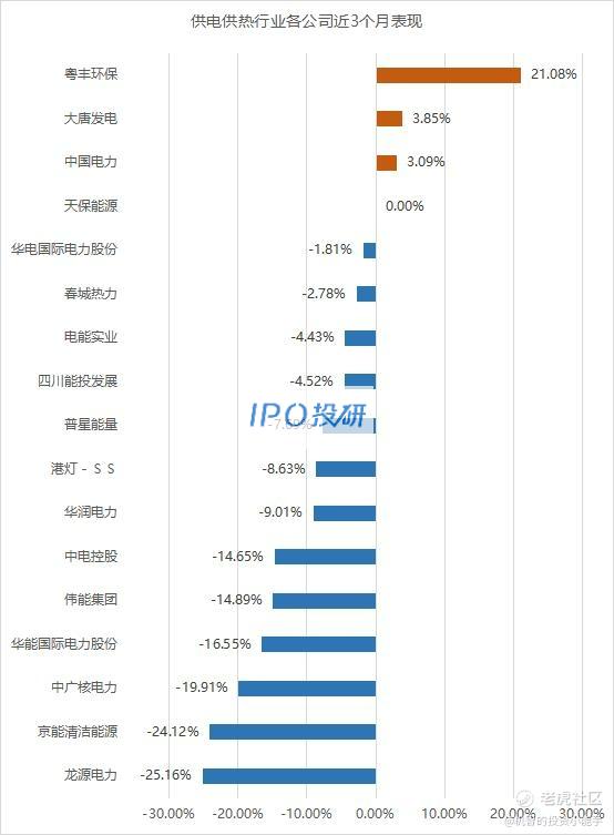 近3个月涨幅最大的是粤丰环保(01381.HK),涨幅为21.08%;跌幅最大的是龙源电力(00916.HK),跌幅为-25.16%。