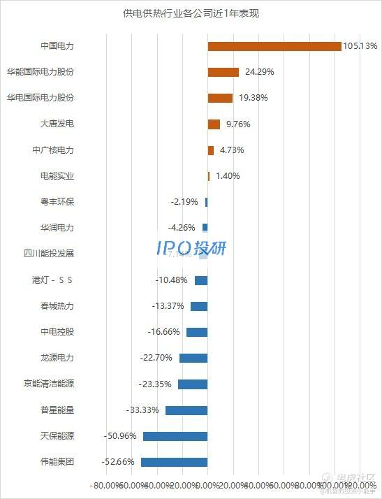 近1年涨幅最大的是中国电力(02380.HK),涨幅为105.13%;跌幅最大的是伟能集团(01608.HK),跌幅为-52.66%。