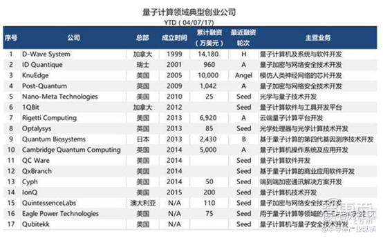 量子技术一直备受世界各国的科技工作者和企业的重点关注。量子计算领域典型创业公司主要以欧美国家为主导。