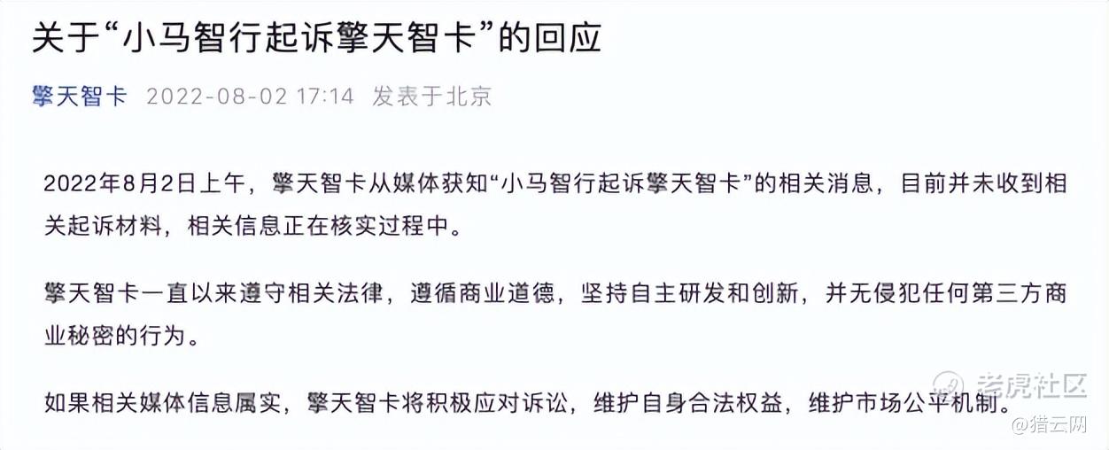 擎天智卡回应称将积极应对诉讼,维护自身合法权益,维护市场公平机制。