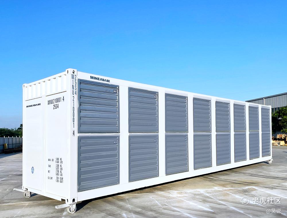 7 月 26 日,Minerbase 发布了其最新款液冷集装箱产品 Minerbase LN20,官方资料显示,该产品售价为 8.58 万美元,重 7.8 吨,箱体尺寸为 12000 mm x 2400 mm x 2800 mm (宽度 x 深度 x ⾼度),散热模式为⻛冷加⽔冷,机位数量达 240 台。多机位数量则带来了单机位成本的降低,单个机位在不考虑物流和其他成本的情况下最低只需 357.5 美元。将风冷矿机拆除风扇直接浸泡其中以实现液冷,安装风扇模拟器即可正常运行,不需额外购买水冷矿机。