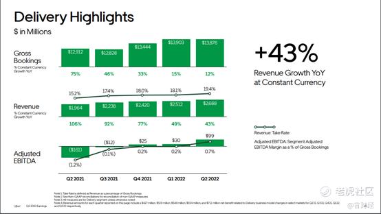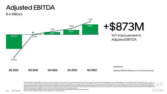而Uber Eat板块,则是改善最为明显的业务板块。在总交易金额环比基本持平的情况下,通过货币化率的提升,使得收入环比增长,并且带来的是调整后EBITDA利润环比增长了将近2倍。