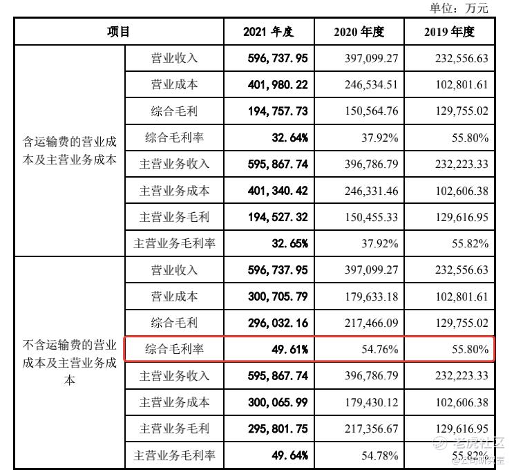 作为一家以外贸出口为主的公司,2020年以来海运运费上涨影响很大,但剔除运费影响后,2019年到2021年,致欧的毛利率仍逐年下滑,分别为55.80%、54.76%、49.61%。