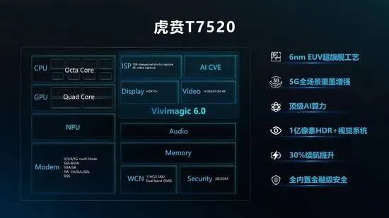 紫光展锐,这家国产芯片巨头,虽然在国内并没有太大的名堂,但却凭借LG、“非洲手机之王”传音、HTC等手机厂商青睐,紫光展锐也一跃成为了“非洲芯片之王”,如今在5G网络时代,紫光展锐也是一改以往中低端的形象,开始不断地冲击中高端5G芯片市场,虎贲T7510、春藤510、虎贲T7520等众多5G芯片推出,尤其是虎贲T7520芯片的推出,不仅仅全球成为全球首款6nm EUV芯片,同时还拥有双卡双5G、VoNR5G 通话等最新款的标准和技术加持,也是让虎贲T7520有着更加亮眼的表现。