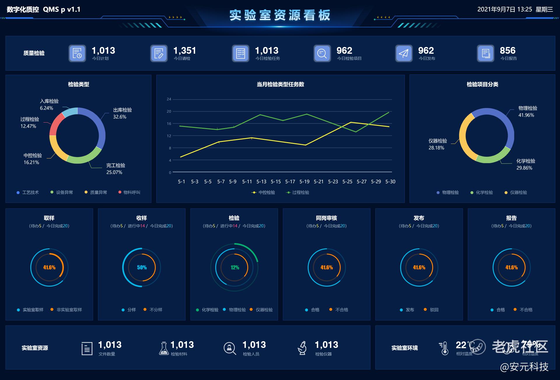安元·数字化质控系统以生产企业质量检验业务管理为核心,辅助实验室资源管理、移动应用、系统集成、统计分析、质量看板等功能,以数字化赋能流程型生产企业全过程、全方位质量管理,深挖数据潜力、提升产业协同,实现高质量可持续发展。