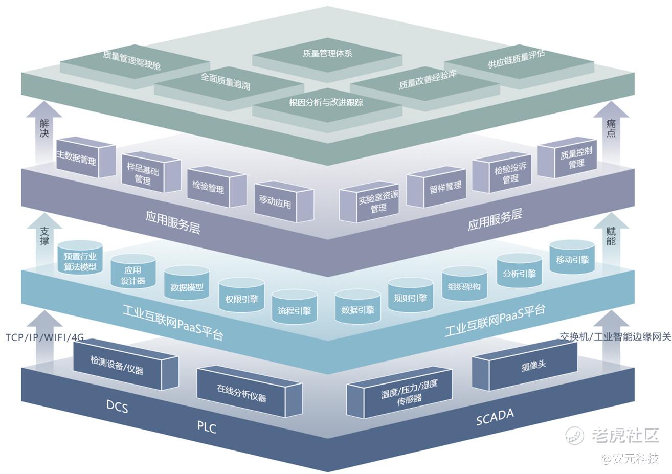 安元科技基于自主研发的工业互联网底座平台,以数字赋能为抓手,持续深入“工业互联网+”领域的技术创新,发挥“工业互联网全要素能力体系”的先行优势,打造工业互联网+数字化质控产品,全面提升企业质量管理效率、效益、效能。