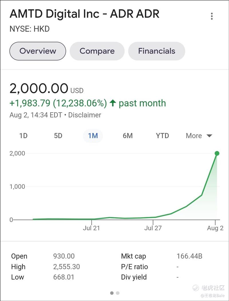 尚乘数科到底是谁?一位投资人士称,“如果你认为商品‘定价过高’并且通货膨胀已经‘达到顶峰’,那么请查看以下内容:AMTD Digital Inc.,一家收入1500万美元、价值3420亿美元的公司”。