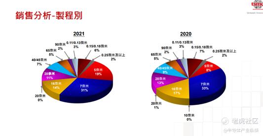 然而,在台积电的各种制程工艺中,22nm的占比不大,这在该公司2020和2021年的财报中有体现,如下图所示。