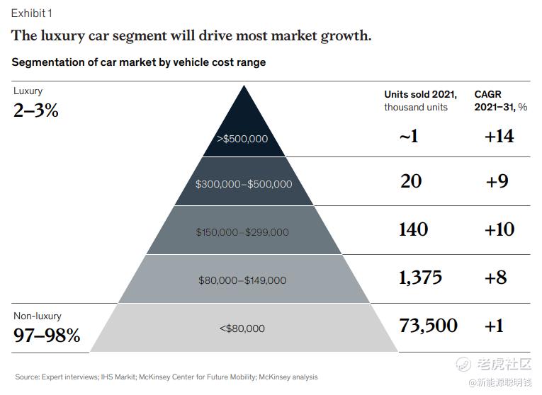 我们的分析表明,不同价格区间的豪华车市场的增长有所不同,更高价格区间的品牌会有更多增长。