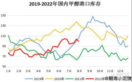 本周甲醇港口库存整体小幅去库,截至8月3日,甲醇港口库存总量在99.47万吨,环比减少3.98万吨。进口船货抵港速度不及预期,多以下游工厂到货为主,江内部分区域存少数集中发货,江浙区域去库存明显。华东库存减少3.88万吨。华南港口库存窄幅去库,仅减少0.1万吨,主要集中在福建地区,虽然周内进口及内贸船均有补充,但在下游刚需补货状态下,库存有所减少;而广东地区本周仅少量内贸船只抵港,下游刚需稳定消耗,从而表现去库。