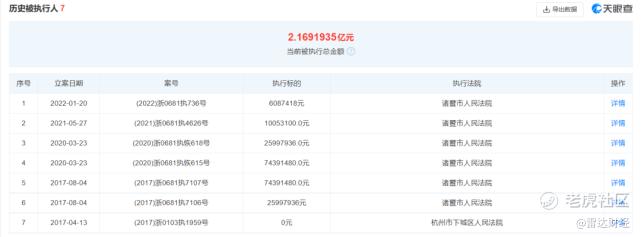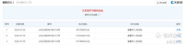 此三条被执行信息的执行法院均为诸暨市人民法院,案号为(2022)浙0681执5116号的相关案件执行标的为14738.96万元,案号(2022)浙0681执5117号的执行标的为17044.59万元,案号(2022)浙0681执5118号的执行标的为4613.59万元。