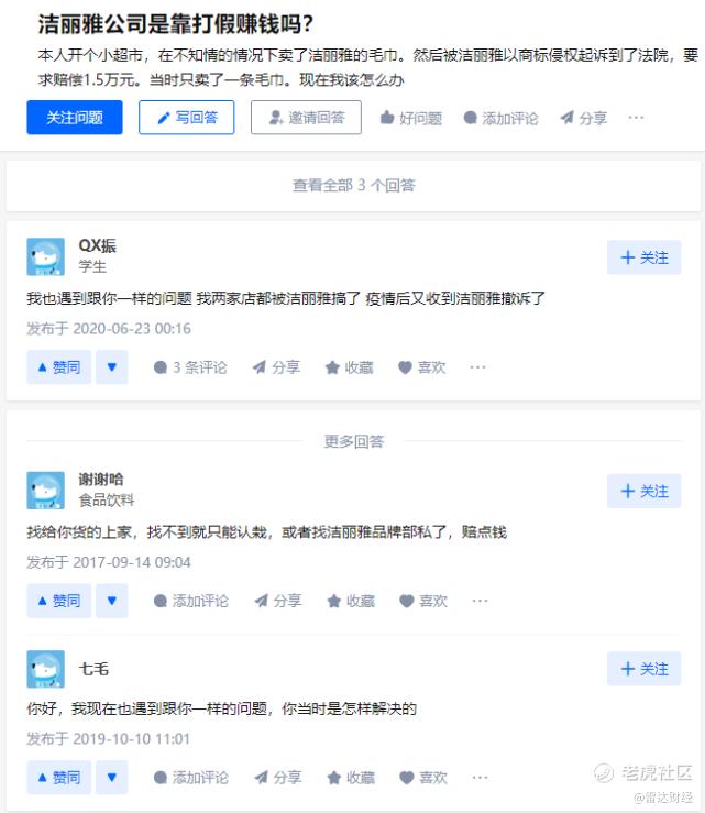 网友质疑,洁丽雅有靠打假挣钱之嫌。