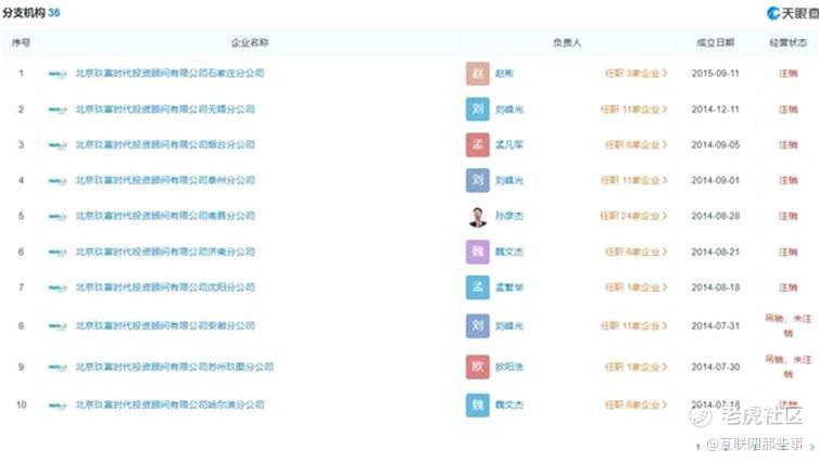 据天眼查等查询显示,截至2021年末,悟空理财关联的玖富数科,参保人数仅余26人,这而在2016年,这一数字曾高达470余人,短短5年,员工数暴降近95%,且关联的36家分支机构均为注销或吊销,该司直接持股的10家企业中,仅余6家在正常经营。