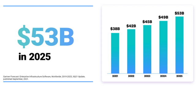 Observability是Datadog的核心产品,根据Datadog最新的投资者介绍,Observability市场的规模预计将从2021年的380亿美元增长到2025年的530亿美元——未来几年的复合年增长率约为9%。该公司已经展示了其扩大产品和潜在市场机会的能力。