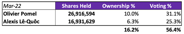 两位联合创始人是最大的内部所有者,Pomel拥有约10%的股份,Lê-Quôc拥有约6%的股份。他们还持有合计约56%的投票权——这对一些投资者来说可能是禁忌,但我个人并不介意创始人在快速发展的公司中拥有大量投票权。
