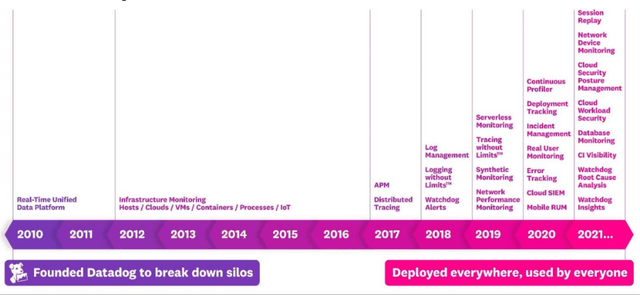 该公司成立的目的是打破开发人员和运营之间的孤岛,因为在许多情况下,这两个业务部门都在努力沟通并且经常看不到相同的数据。后来Datadog继续扩展到安全产品。