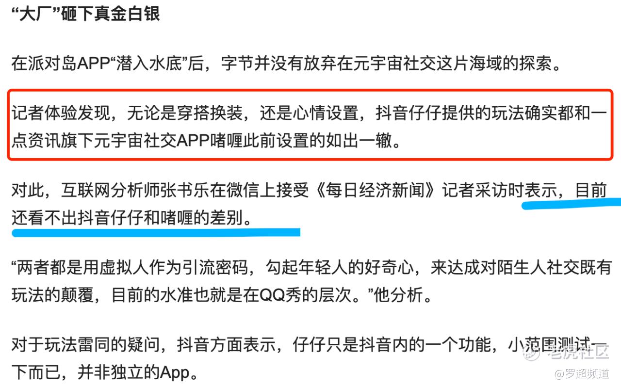 不论啫喱何时恢复上线,它的创新都是值得肯定的,它给社交产业带来更多可能性,让大家觉得元宇宙并不遥远。或许抖音仔仔依托抖音的入口级流量能大获成功,但要真正赢得尊重还得靠真正的创新才行。当下的互联网以及元宇宙行业,需要的是更多啫喱,而不是仔仔。$腾讯控股(00700)$ $Meta Platforms(META)$ $百度(BIDU)$