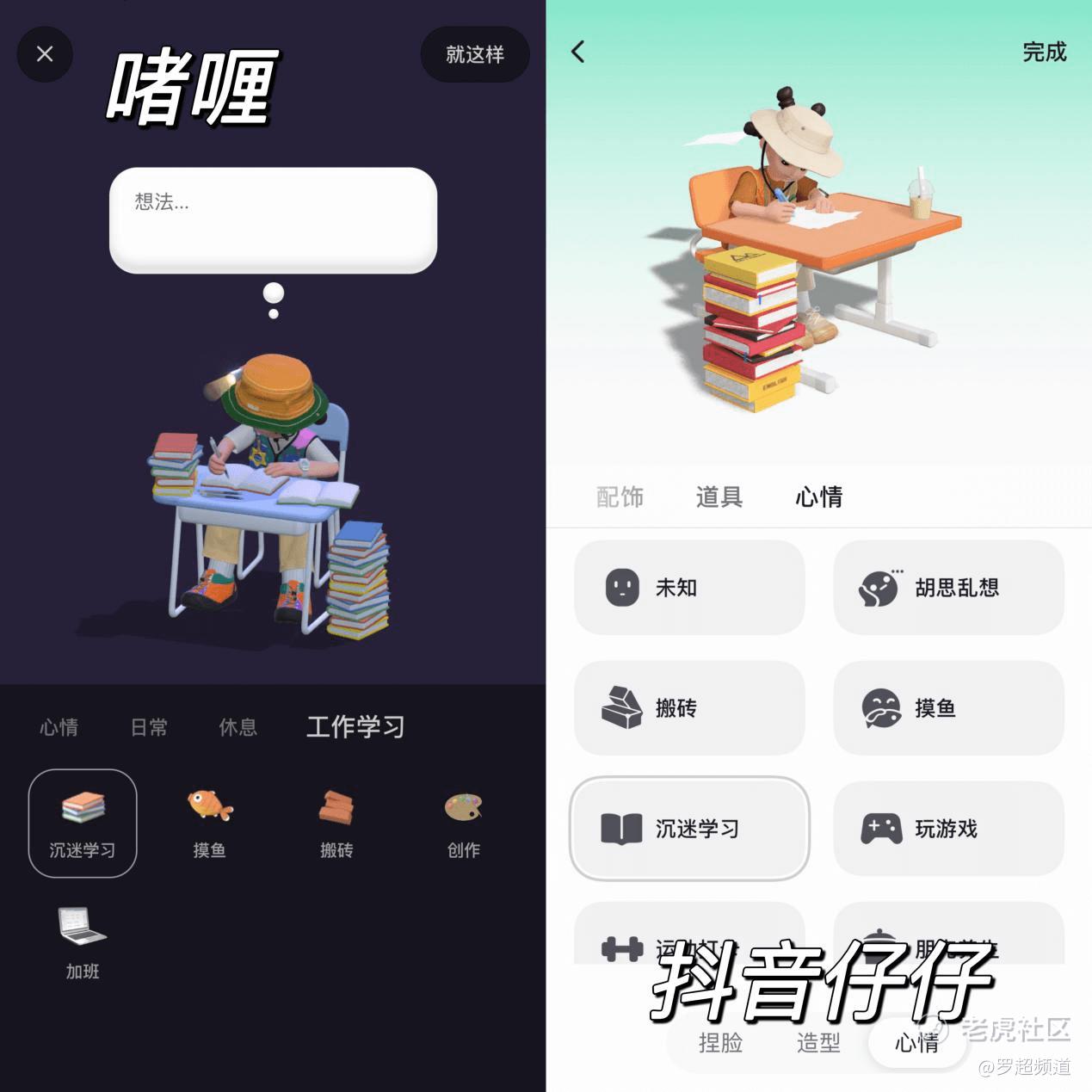 除了名字一样外,虚拟形象的动作也能看出借鉴痕迹,在“沉迷学习”这样的心情下,用户虚拟形象看上去有几分神似,只是桌子换了一张。