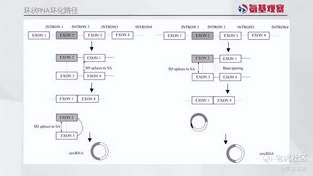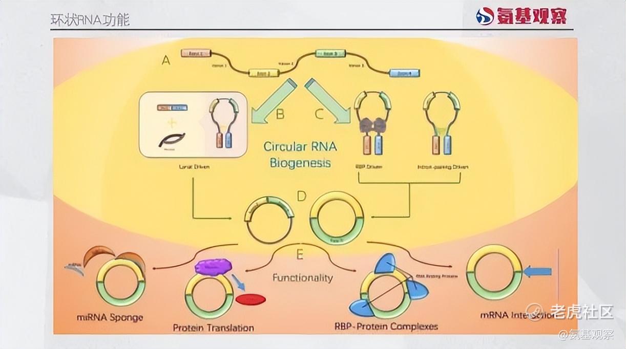 例如,在肝癌中,环状RNA之一的Hsa_circ_0001649 便会显着下调。这表明它可能作为一种新的潜在肝癌生物标志物,根据其表达水平来判断肿瘤大小的变化情况。当然,不仅是肿瘤,包括阿尔兹海默症等,环状RNA都是潜在的生物标志物。