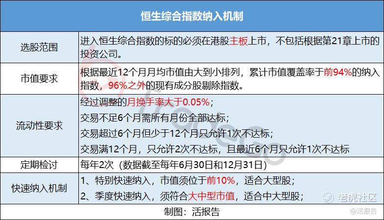 进入恒生综合指数的标的必须在港股主板上市,且不包括根据第21章上市的投资公司。