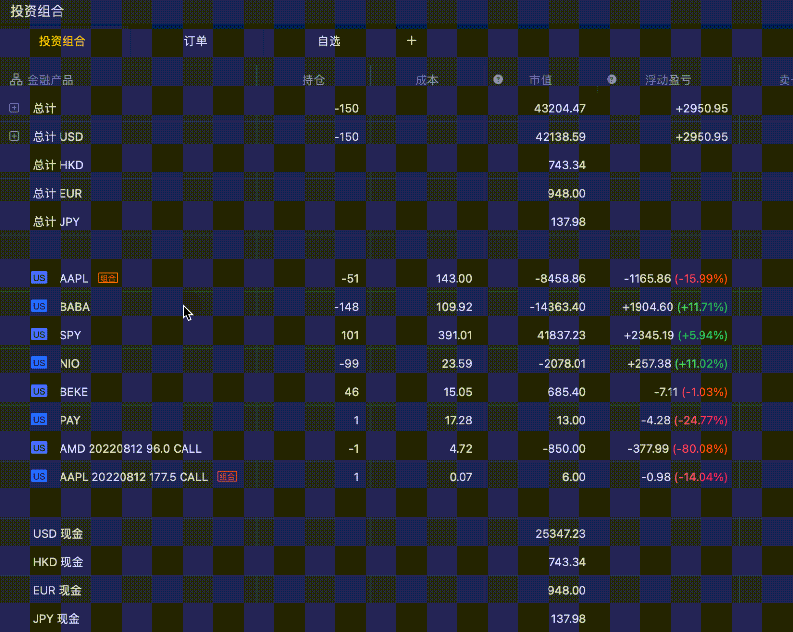 4.投资组合组件支持按品种排序