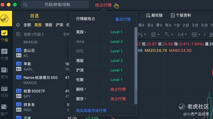 2.标题栏新增行情权限展示和行情抢占