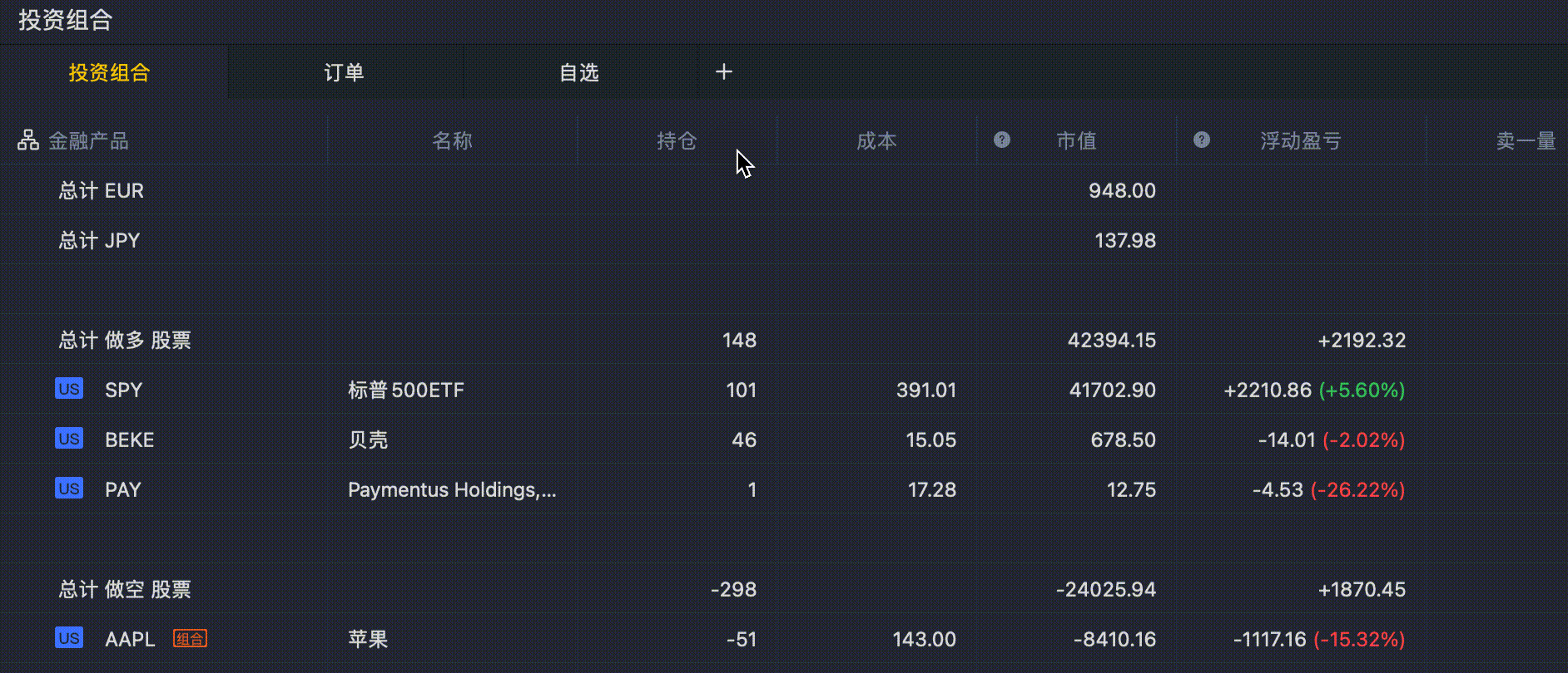 介绍:投资组合TAB下,默认无分类,在【金融产品】列点击分类图标,可将持仓按照品种分类,或按照(品种+多空方向)分类展示。持仓较多情况下,可清晰掌控当前账户情况。