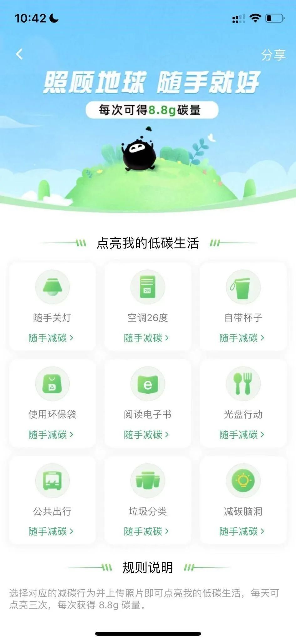 在“88碳账户”的体系中,生活减碳场景下个人行为的减碳量被简化为每次自行上传一个“低碳行为”可直接获得8.8克减碳量。然而对这个过程,平台既没有进行真实性核证,也未公布其应用的减碳量计算方法。在此情况下,即使消费者上传的低碳行为是真实有效的,如何避免同一行为在不同的项目中被重复计算仍是个关键问题。