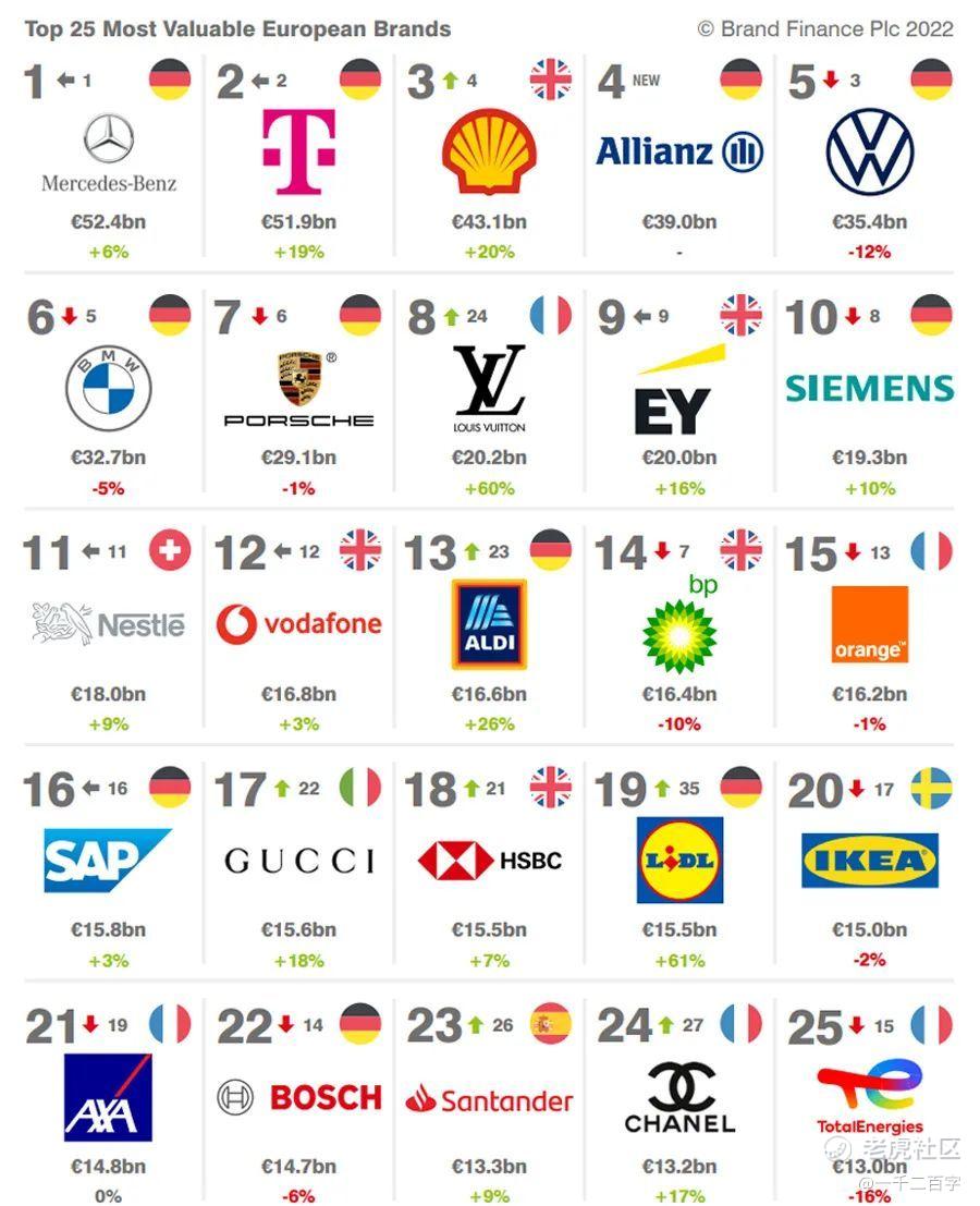 在英国评估机构发布的2022欧洲品牌价值榜单中,奥乐齐(Aldi)排名第13位,排在德国超市LIDL和瑞典零售商宜家之前。榜单上靠前的大多是能源类、汽车类和奢侈品类公司。
