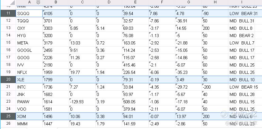 三倍做空ETF SQQQ大涨,昨晚SP500中,90%个股收跌,板块中只有能源坚挺,今天白天原油期货继续上涨。强者恒强。前面帖子已经讲过几个月能源板块。