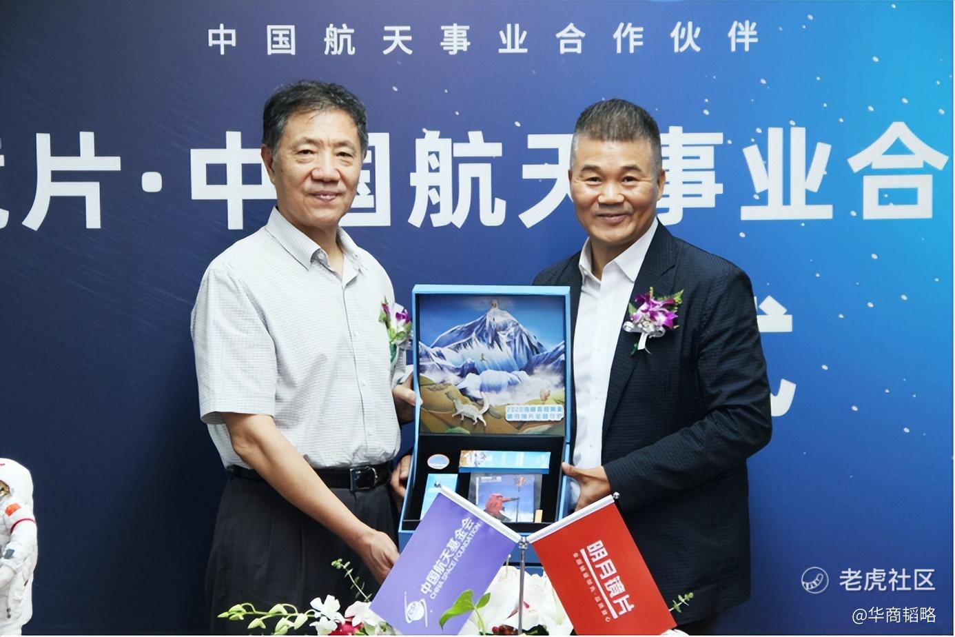图|中国航天基金会理事长吴志坚、明月镜片董事长谢公晚互赠礼物