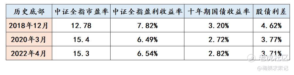 我们看到,以中证全指作为股市代表的话,过去5年的历史底部,对应的股债利差基本都在3.7%以上。