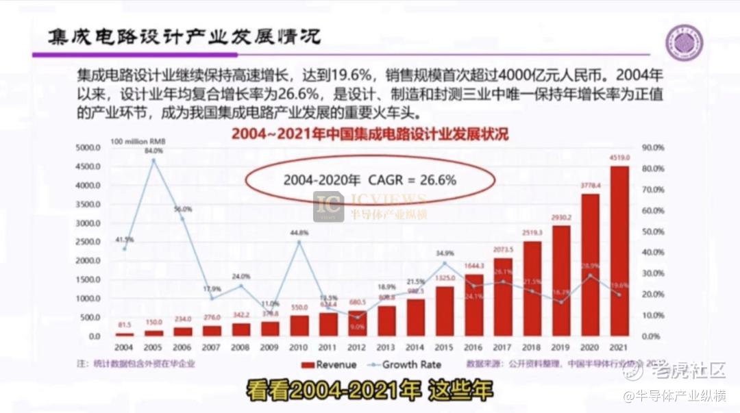 设计业是增长最快的产业,从2004年到2020年的CAGR来看,设计是一个难得的高速发展的产业,年均复合增长率达到了26.5%