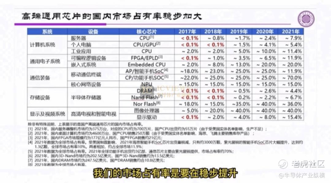 中国在过去的几十年中不断进步,特别是在高端通用芯片领域市场占有率在稳步提升。如果说2019年以前,中国还有一些高端芯片在国内市场几乎看不见,但2019年以后国产高端芯片的比例在大幅提升。今天,随着市场竞争力的不断提升,我们还可以看到更多的表现。