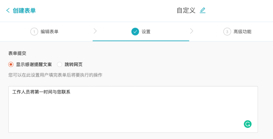 3. 支持提交后跳转链接/显示文案