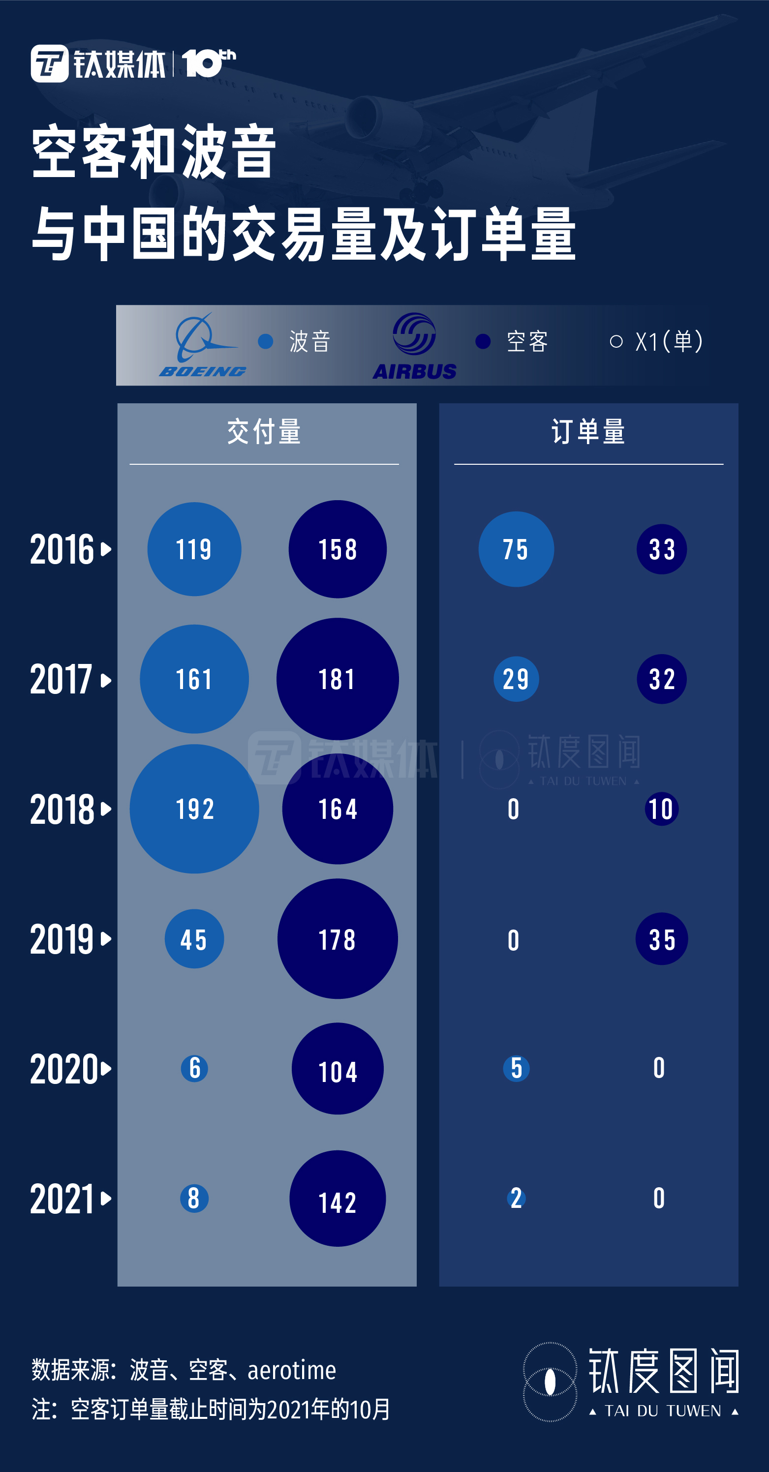 从6年间两家公司的交付量来看,空客向中国航空公司交付飞机的数量整体高于波音,在2018年,波音获得短暂的“胜利”后,交付量呈暴跌趋势;从订单量来看,中国对波音的订单在2016-2017两年间高于空客,此后2年间,订单数量暴跌至0。