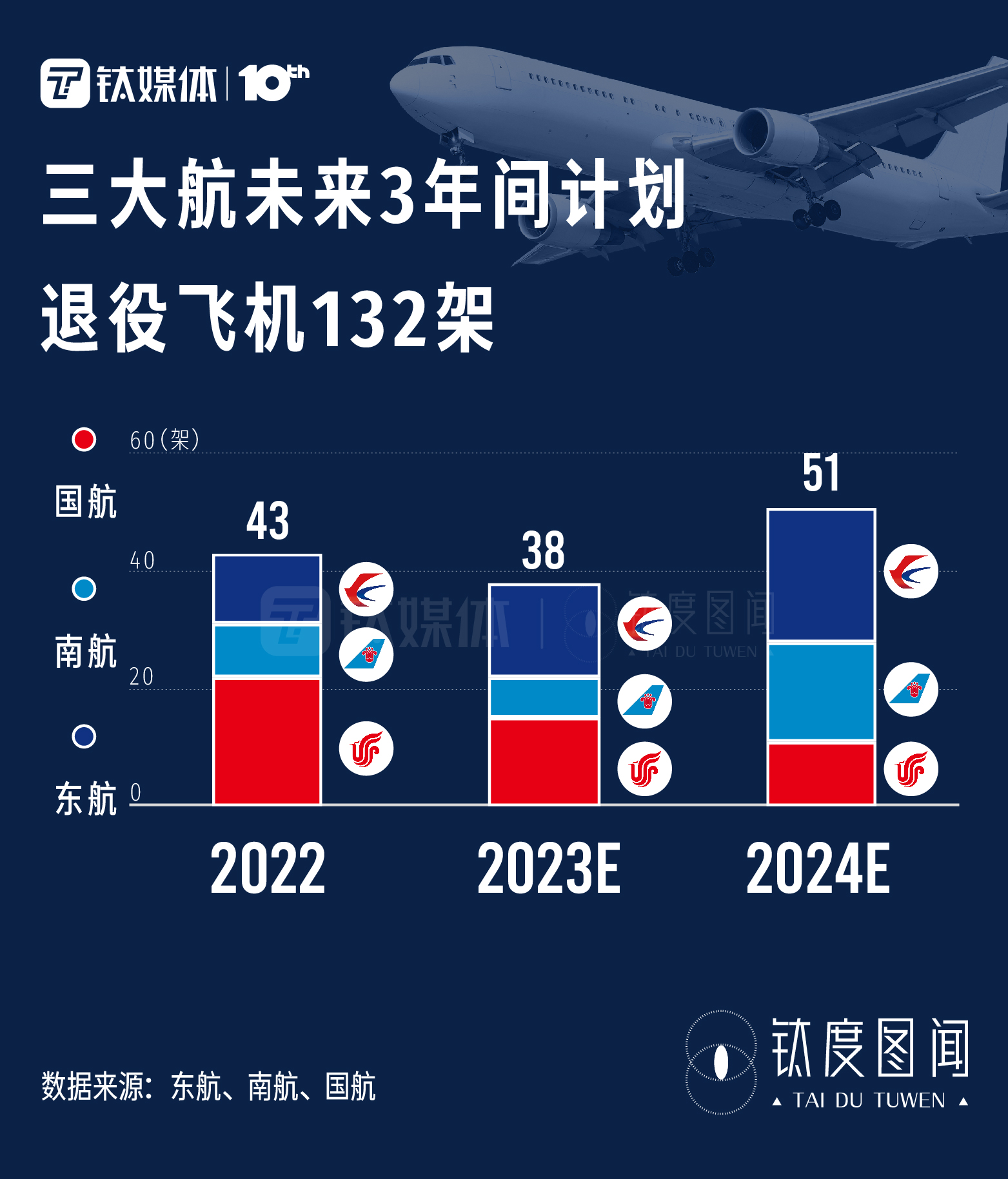 飞机退役,主要原因是维修、油耗、翻新等,大部分飞机都无法“寿终正寝”。航空公司每年都有计划“退役”的飞机,所以各大航空公司在飞机即将退役时,会购买新的飞机作为补充。根据三大航年报,三大航在未来3年间计划退役飞机132架。